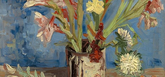 有剑兰和翠菊的花瓶