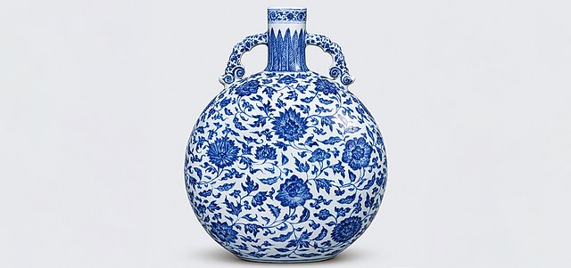 青花缠枝花卉纹大抱月瓶