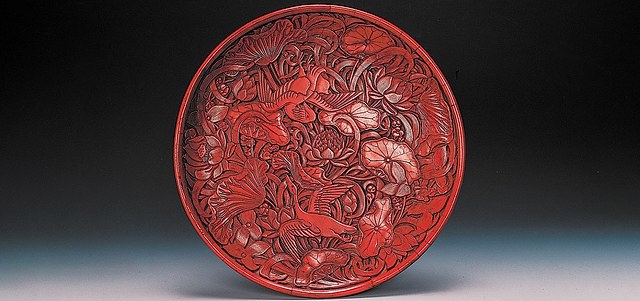剔红荷塘双鸳纹圆盘