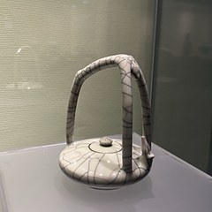 现代龙泉青瓷金猴戏龟提梁壶,张绍斌