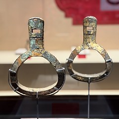 展品中最具有历史意义的为一对北燕时期的鎏金铜木芯马镫。这对马镫出土于辽宁北票西官营子冯素弗墓,年代为北燕太平七年(公元415年),是迄今为止有明确年代可考的完整双马镫实物,也是中国乃至世界上较早的骑乘用马镫实物,比欧洲最早出现的马镫早了约300年。