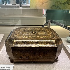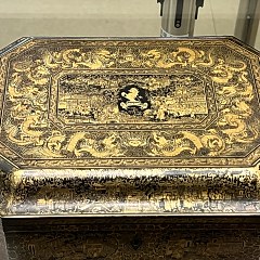 黑漆描金龙纹庭院人物针线盒,19世纪