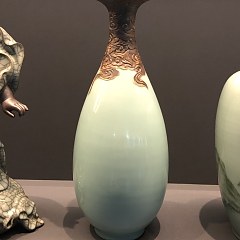 此次共展出古代龙泉瓷器20件,包括南宋时期的簋式炉、哥窑天球瓶、鼎式八卦兽足炉、折沿洗,以及元代花菱缠枝露胎瑞果盘等;此外还展出当代工艺美术师的作品91件,如徐朝兴的「哥弟混合三环瓶」、陈坛根的「美人醉」、徐象龙的「卧龙」等。
