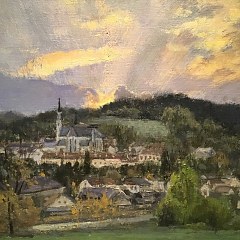 庄重1972年生于南京,1995年从南京艺术学院毕业。近年来他多次在东欧诸国旅行采风,学习西方油画家在风景画创作中的元素并为己所用,本次「意象东欧」中的这组作品便是向传统风景画的致意。