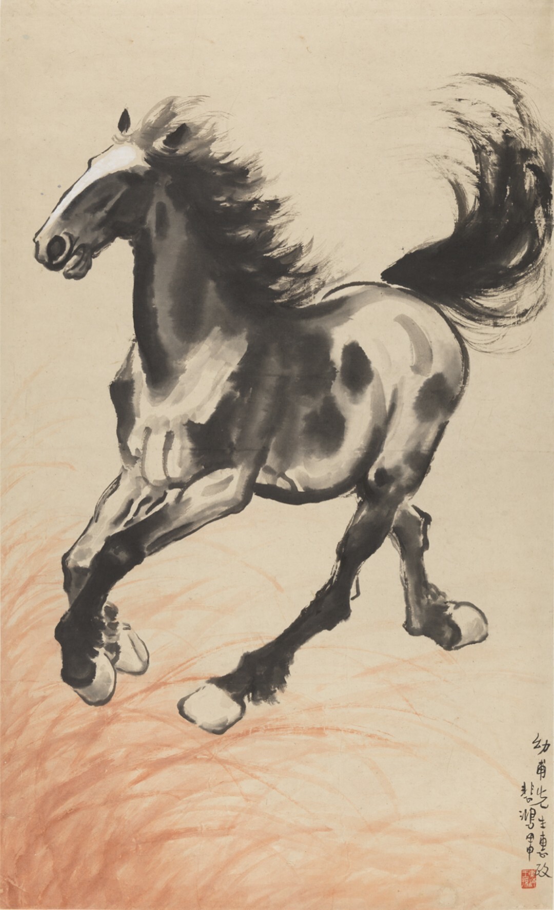 《奔马》,徐悲鸿,纸本水墨设色,1944年