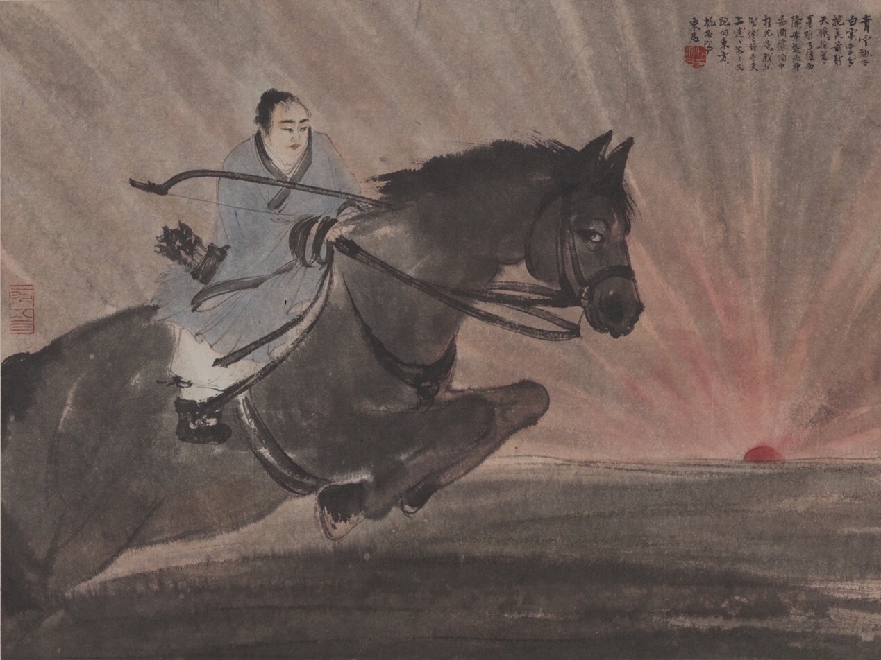 第三章「边塞牧歌」聚焦韩乐然、叶浅予、力群等画家深入边疆地区所描绘的牧民与马的生动场景。第四章「金戈铁马」展出彦涵、刘岘、古元等艺术家描绘战马的作品,展现马在烽火岁月里的雄姿。第五章「以梦为马」特邀部分当代艺术家,展出他们描绘梦马、天马题材的作品。