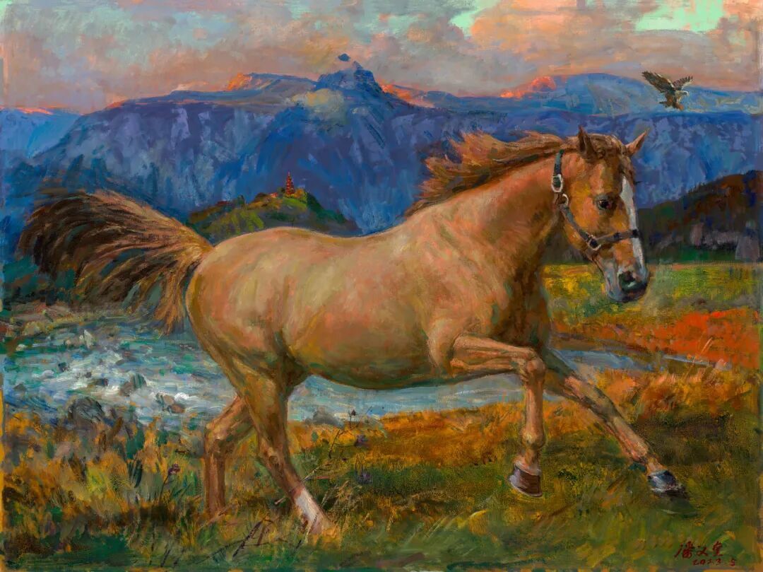 《奔腾的骏马》,潘义奎,布面油彩,2023年