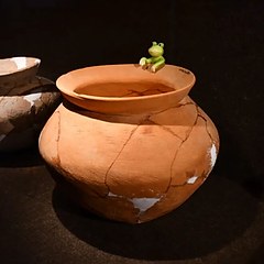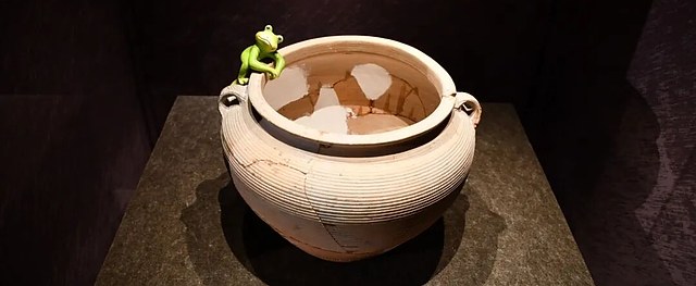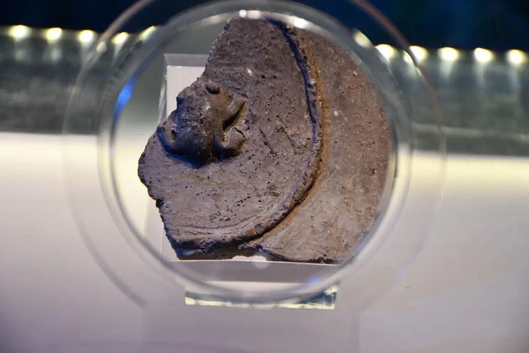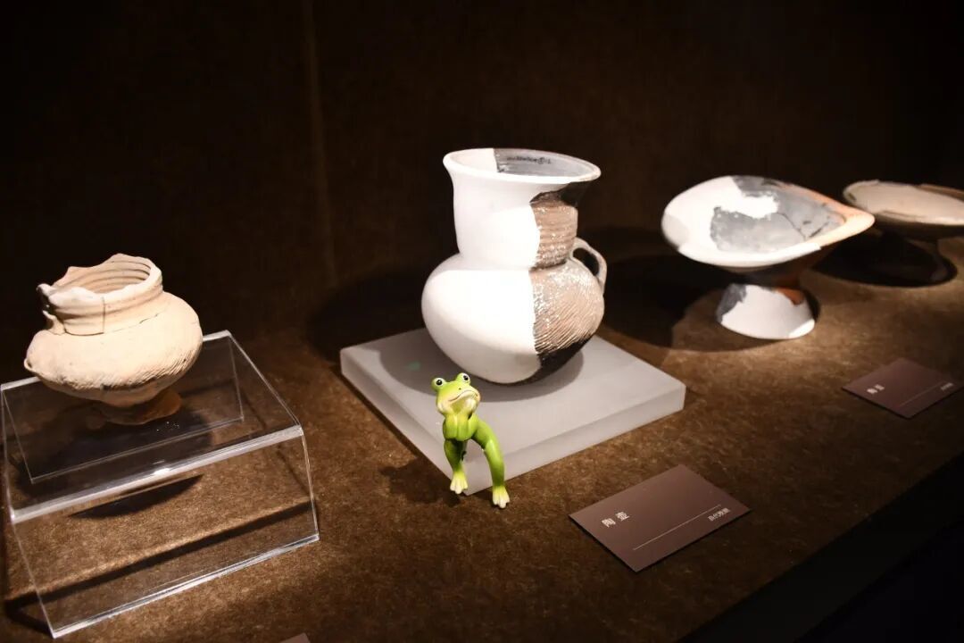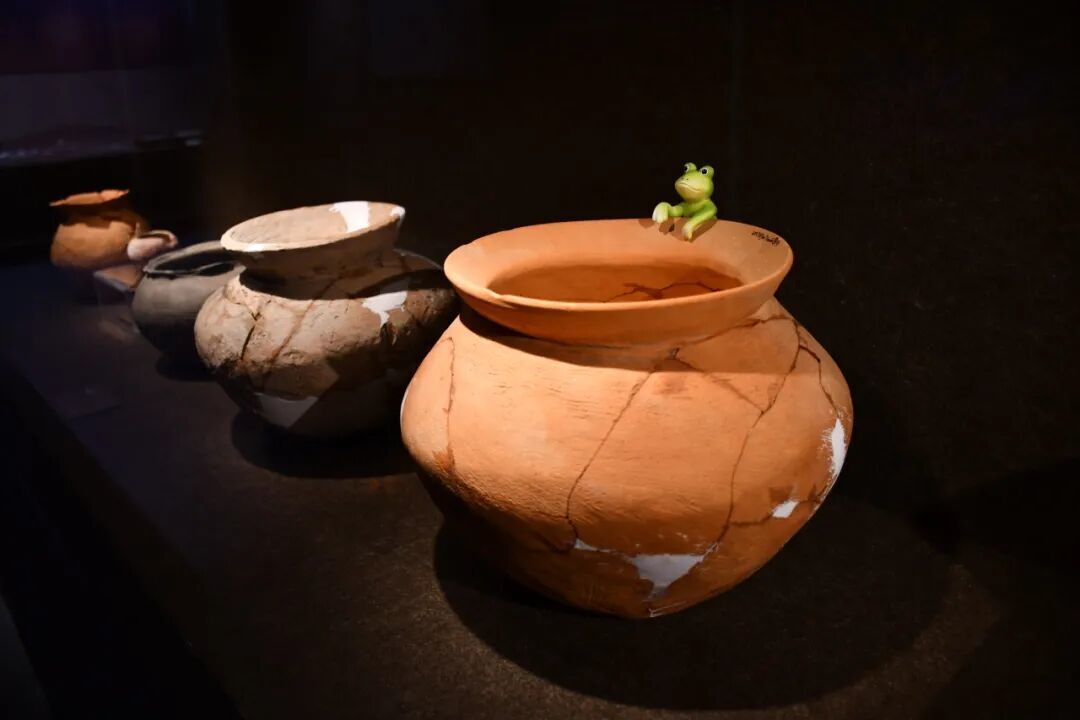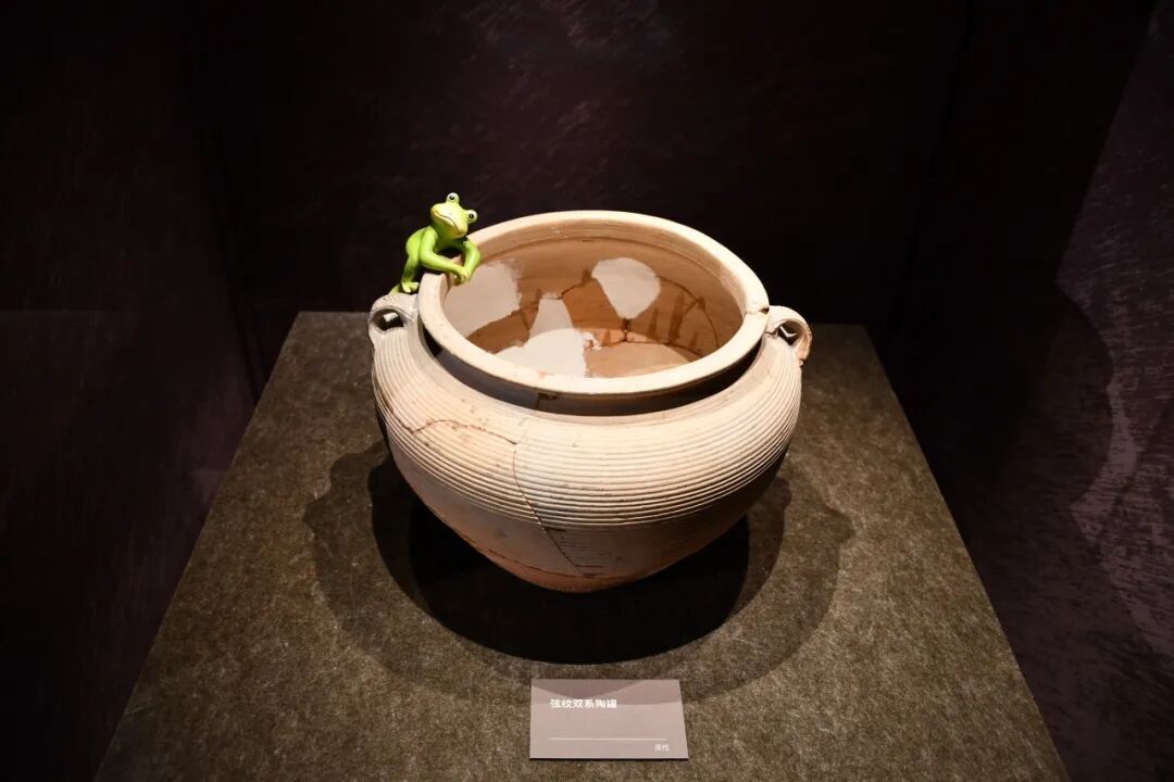 展览主题「亘古的鸣响」源于一件蛙形堆塑纹陶片,这是河姆渡文化中首次发现蛙形纹饰造型。蛙纹体现了先民对自然的观察,早期多与水崇拜、稻耕祈愿及生殖繁衍相关联。策展方还特别在展厅设计中加入青蛙和蛙鸣元素,以呼应展览主题。