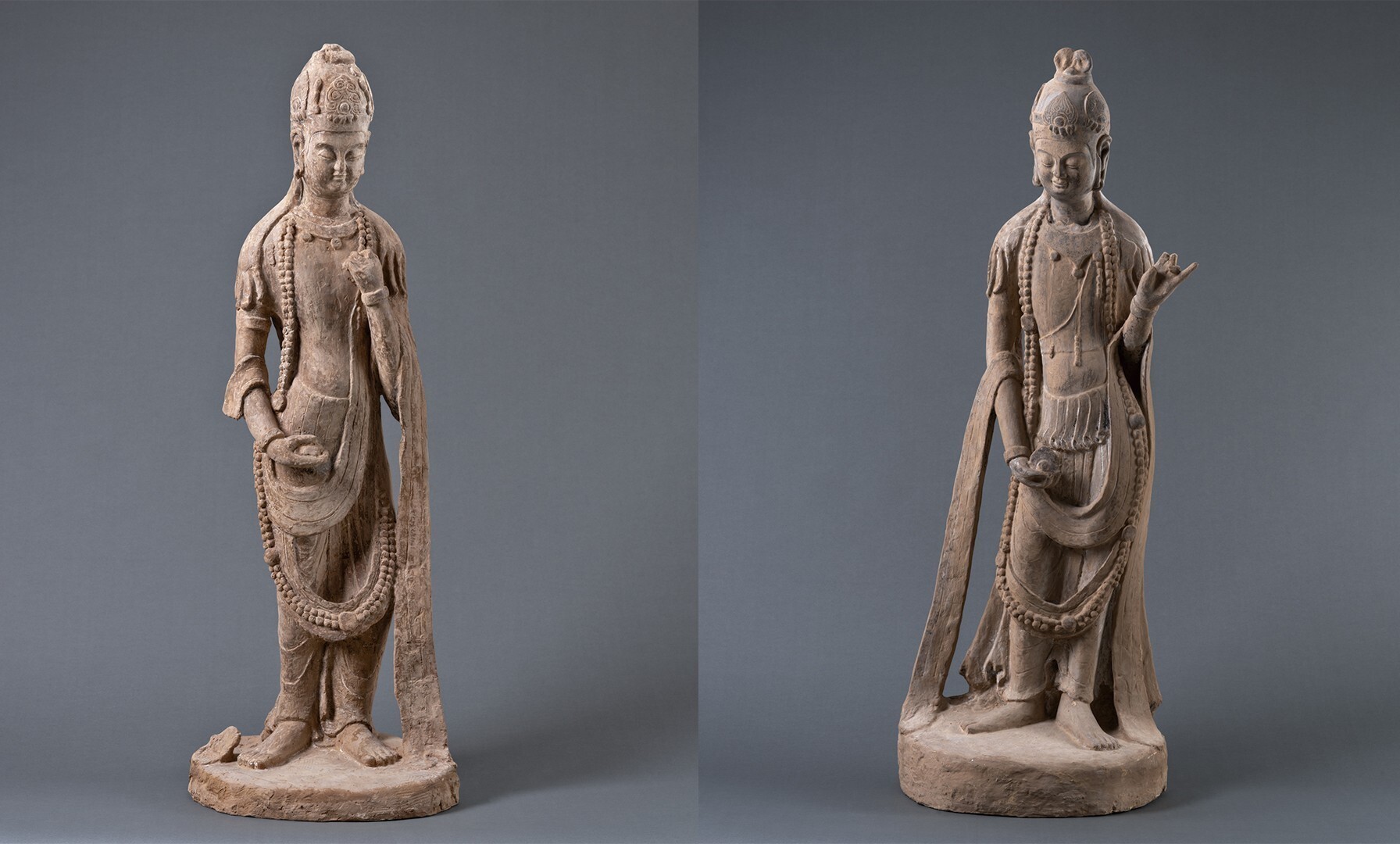 麦积山62窟正壁左右两侧泥塑菩萨立像