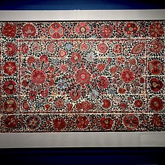 展品时间跨度从史前时期至20世纪初,最值得关注的文物包括俄罗斯斯基泰时代头盔、哈萨克斯坦泥板文书碎片、伊朗萨法维王朝青花瓷瓶、乌兹别克斯坦浮雕龙、白俄罗斯银质圣餐杯、吉尔吉斯斯坦黄金面具(复制品)等。