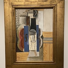 《小提琴与乐谱:「小鸟」》(Violin and Sheet Music: “Petit Oiseau”),Georges Braque,1913年,布面油画、炭笔