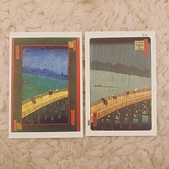 1853年生于荷兰的梵高(Vincent van Gogh)在33岁时移居巴黎,在那里一边接受各种各样的启发,一边摸索属于自己的绘画表现手法,其间起到重要作用的是日本的浮世绘。梵高不断地搜集流传至欧洲的日本浮世绘,将它们临摹成油画,学习其中的构图与色彩。