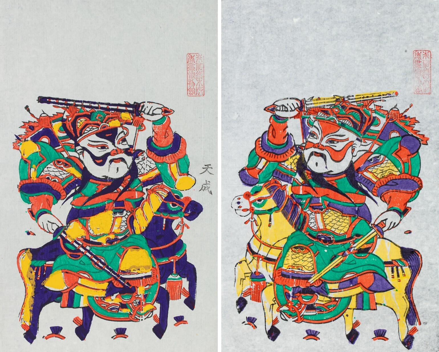 《骑马鞭锏门神》年画,产地:天津杨柳青,清华大学艺术博物馆藏