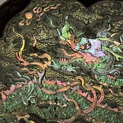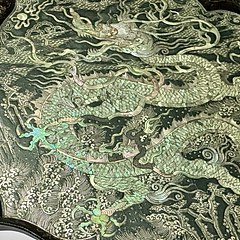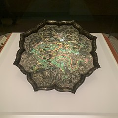黑漆螺钿海水龙纹菱花形盘,元代,日本东京国立博物馆藏