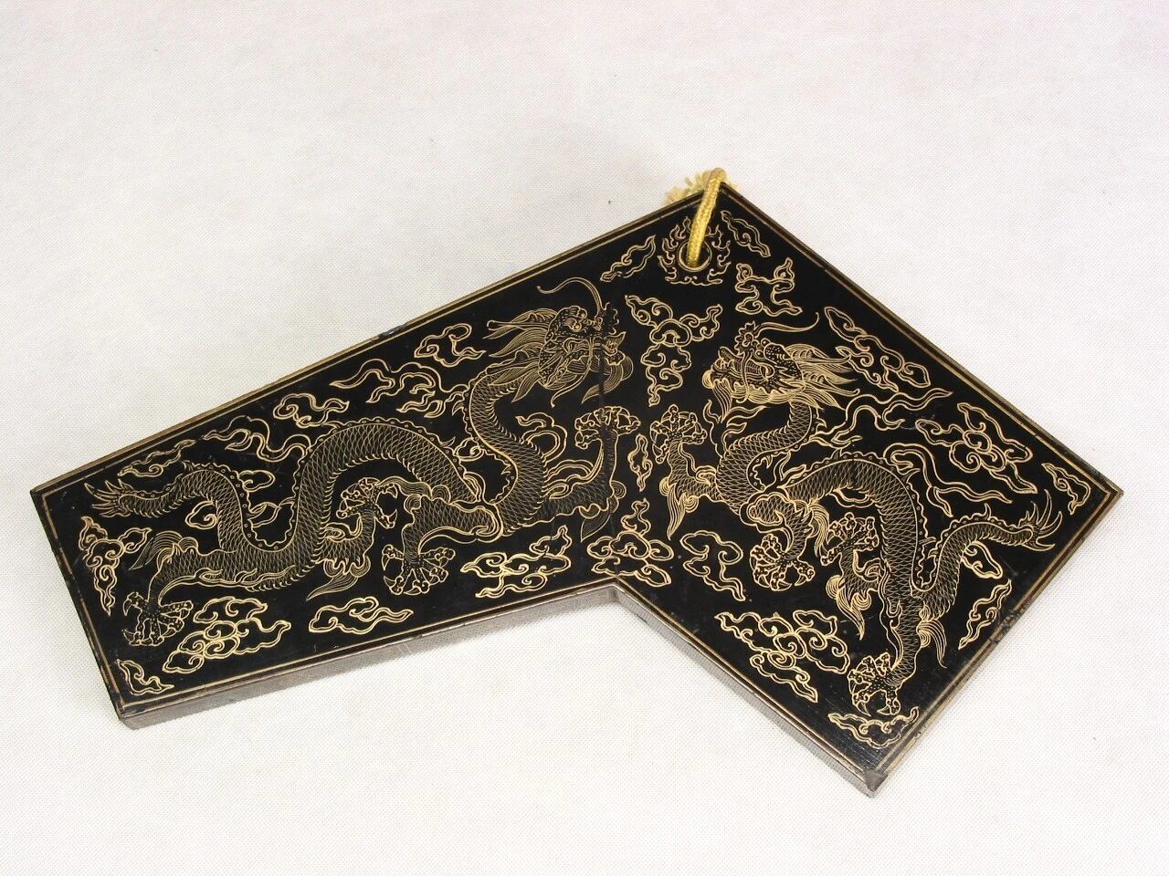 康熙丙申年款灵璧石黑漆描金云龙纹编磬· 倍南吕,沈阳故宫博物院藏