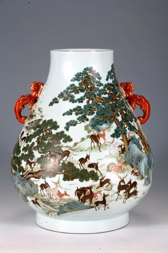 乾隆款粉彩双凤耳百鹿尊,沈阳故宫博物院藏