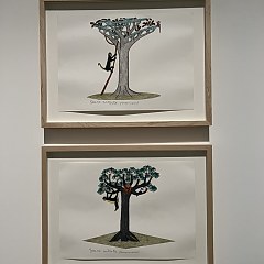 「树,树」于2019年在巴黎卡地亚当代艺术基金会首展,汇集了多位艺术家、植物学家和哲学家的作品,展现了他们在各自的艺术创作或科学研究领域与「树」结成的紧密纽带,例如法国植物学家 Francis Hallé 60余年潜心钻研树木,将自己的研究发现融入写生画和旅行日志;巴西艺术家 Luiz Zerbini 用若干绘画和单刷版画作品,以及一张植物标本桌展现热带植物园与树的邂逅。