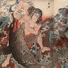 《儿捨若丸 袛园之里川》,歌川国贞,木版画,1850年代