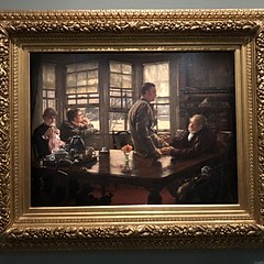 James Tissot(1836-1902)出生于法国南特,曾在巴黎高等美术学院就读,1850年代首次在巴黎展出自己的画作。Tissot 的早期绘画题材以历史人物为主,1860年代之后转而描绘与画家同时代的人物肖像,尤以时尚的巴黎女性为主。他的《巴黎女子》系列、《浪子》系列和数百幅圣经插画让他在19世纪为人们熟知。