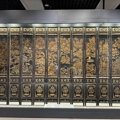 广东省博物馆内的「漆木精华——潮州木雕艺术展览」分为源流篇、制作篇、艺术篇、器用篇、欣赏篇共五个单元,共展出木雕实物200多件(套),品类丰富,精品叠出,如场面宏阔、精细入微的描金漆画诗经意境图大寿屏,玲珑剔透、栩栩如生的圆雕蟹篓,以及造型独特、精雕细刻的神龛、神亭、神轿、薰炉罩、馔盒、糖果架、纸煤筒等藏品。