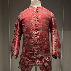 展出文物体现出法国时尚中多种文化的交融,如一件18世纪法国男性贵族的外套采用法国丝绸面料,而纹样模仿当时在法国被视为奢侈品的中国丝绸。观众从中可以看到中法之间的贸易与文化交流,以及中国丝绸对法国时尚设计带来的灵感。