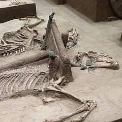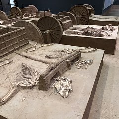马车不仅是王室贵族的代步工具,在驿站传递、田猎出行、载兵作战等方面也发挥着重要作用。本次展览集中陈列殷墟出土的23辆马车,为参观者解读商代马车的结构、装饰、用途等知识。