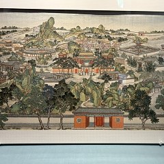 《全本红楼梦图》由清代孙温历时36年绘制而成,其侄孙允谟也参与了其中部分创作。这套画册现存画面总计230幅,为大幅绢本工笔彩绘画,采用鸟瞰构图,将大观园诸多景致悉数入画。其表现情节之详尽、笔法之精细、构图之精美、篇幅之宏大,均为清代同题材绘画作品所仅见。这套画册于1959年入藏旅顺博物馆,为国家一级文物。