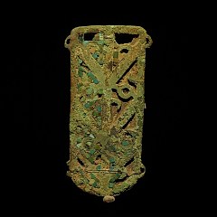 本展中最值得关注的文物是「祭山图玉边璋」,为1986年出土迄今首次长期公开展示。「璋」是古代用于祭山的礼器,这件玉边璋长54.5厘米,宽8.8厘米,雕刻4组相同的祭祀场景,反映出三星堆先民的信仰观念。