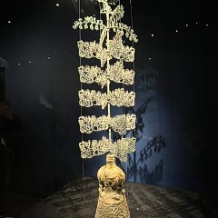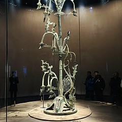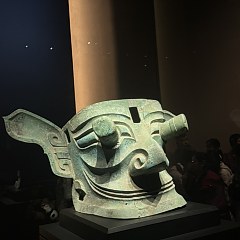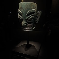 青铜馆的陈列分为5个部分:「奇秘面具——三星堆青铜面具」「人神共舞——神巫群像与祭祀大典」「千载蜀魂——奇绝的宗庙秘宝」「千古之谜——三星堆猜想」「心路历程——三星堆发现故事」,展出131件(套)青铜文物,探索三星堆文化中「人与神」的主题。