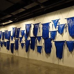 与展览同名的作品《用我们的红包,换你喜欢的蓝色》,通过分享微信红包向社会征集蓝色物品,征集置换活动将持续整个展览期间,不断扩充这组展品,以公共收集的方式建立一种广义的集体主义形式。蓝色是「政纯办」成立之初设定的基调颜色,即「政纯蓝」。