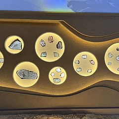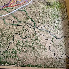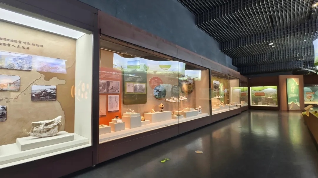 第一单元「时光序曲:地质变迁与生命开篇」以地质演化和古生物发现为主线,通过大型互动沙盘动态展示黄河与海河水系形成及历史改道过程。重点展品包括墙体嵌入式岩矿标本、中国第一件旧石器模型、第一件古人类化石模型等。