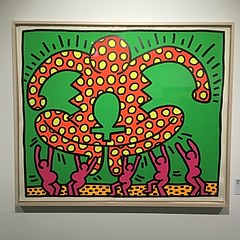 凯斯哈林(Keith Haring,1958-1990)被视为纽约街头涂鸦代表性人物之一,他擅长运用简单线条和鲜明颜色来表达内心想法,明亮活泼的普普作品风格独树一格,具有高度辨识性。他希望透过创作传递对世界的关怀、儿童福利的重视以及唤起人们对社会议题的关心。