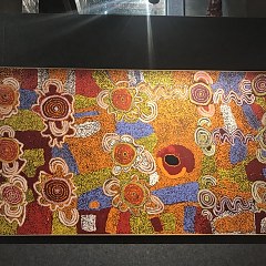 澳大利亚原住民「艺术家」并不是职业画家,他们用几何图形中的点和线等抽象图案、特别的构图、鲜艳的矿物质色彩来表现原住民生活的秩序感,他们对大自然的敬畏感,以及他们的原始宗教信仰和复杂的神话传说。