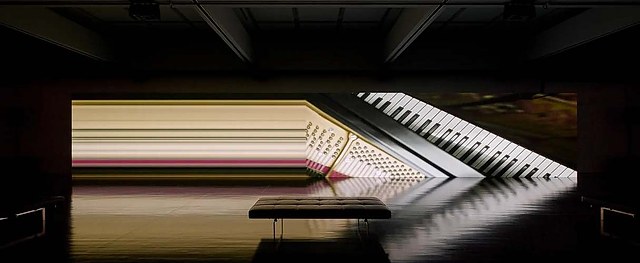 该作品通过「立体化听觉」的方式,呼应配合坂本龙一2017年发表的专辑《async》。巨型 LED 屏幕呈现高谷史郎根据坂本工作室中的乐器、植物、书籍和其他物品所创作的视觉构图,专辑音乐经高精度扬声器以多声道播放,为观众营造沉浸式声音体验。
