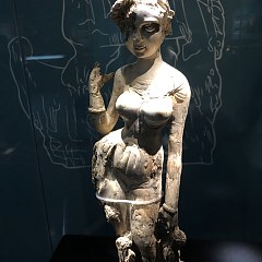 贝格拉姆(Begram)位于阿富汗东部喀布尔以北,贝格拉姆古城遗址由法国考古学家哈金在1937年发掘,据研究为贵霜帝国的夏都,出土文物年代为公元1世纪。这批文物大多来自当时罗马帝国境内的石膏盘、青铜器、玻璃器,以及古代印度地区的象牙雕刻等。