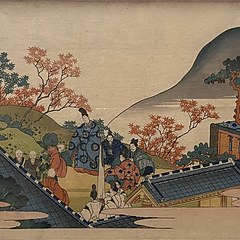 「富士山与乡村场景」屏风,葛饰北斋,约1830-1832年