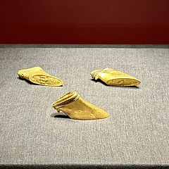 金器是海昏侯墓文物的最大亮点,出土的480件金器总重量超过115公斤,为中国考古史之最。本次展览将呈现褭蹏(niǎo tí)金、麟趾金、饼形金等海昏侯墓出土典型金器,其他重要展品还包括青铜博山炉、鎏金青铜车马饰、透雕龙凤虎纹韘(shè)形玉佩等。