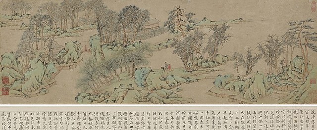 上:《落花酬唱图》,文徵明;下:《小楷落花诗》,文徵明,1504年