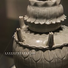 「技术·进奉」篇展示越窑青瓷和秘色瓷两种瓷器。东汉中晚期,青瓷首先在浙江上虞越窑创烧成功。三国是越窑青瓷生产的高峰期,产品胎釉质量高超,装饰题材多样,器物种类丰富,例如参展的朱然家族墓出土青瓷羊便是三国西晋越窑青瓷代表作。9世纪中期,慈溪上林湖窑址群中开始生产秘色瓷。秘色瓷代表了唐宋越窑烧制水平最高技艺,法门寺地宫出土的秘色瓷器表明越窑青瓷已成为皇家使用的贡御瓷器。