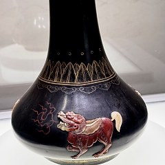 展览不仅呈现新石器时代变形蛙纹彩陶罐、元青花四爱图梅瓶等馆藏珍品,还有逾100件展品为首次公开展出,包括战国施彩磨光黑陶舞俑、唐三彩罐、明代琉璃龙形建筑构件、清乾隆仿钧釉蝶耳衔环尊、清代「储秀宫」款青花缠枝莲纹大盘等。