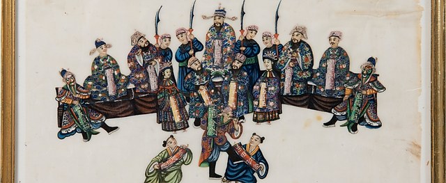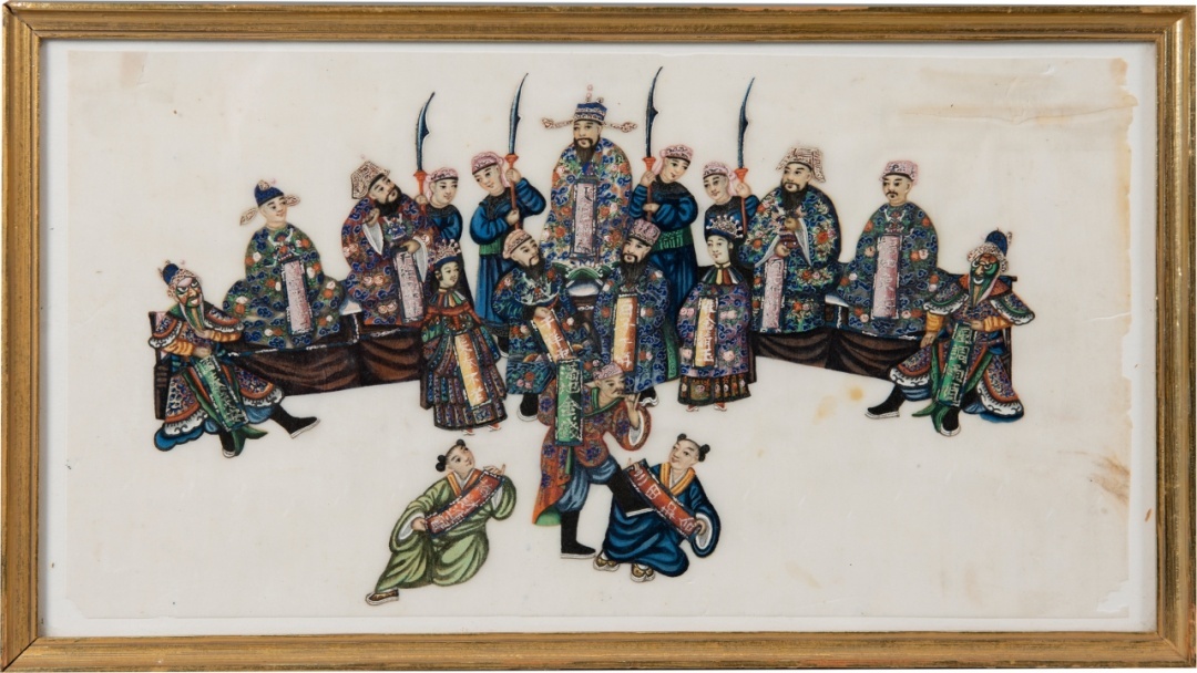 《金钱贺寿》戏曲人物故事通草画,清代,粤剧艺术博物馆藏