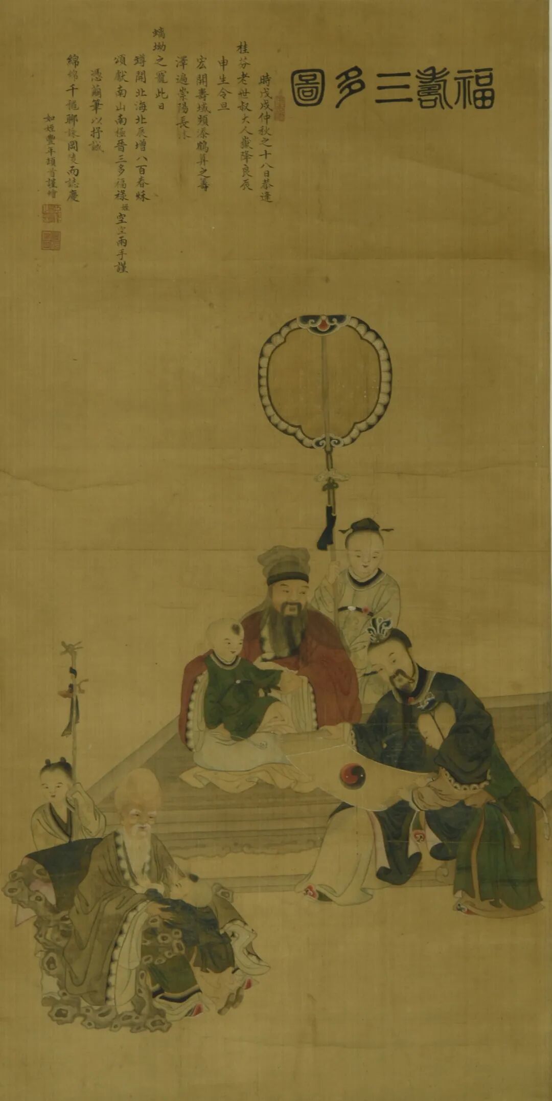 《丰年福禄三多图》条轴,清代,四川大学博物馆藏