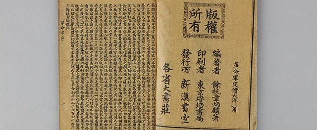 《革命军》出版于1903年,邹容以「革命军中马前卒」署名,由章太炎作序。这是中国近代史上第一部系统地宣传革命、主张建立民主共和国的书作,深刻揭露了清政府的封建专制,一经出版即风行海内外,销量逾百万册,被时人称为「今日国民之第一教科书」,极大地鼓舞了反清革命浪潮。