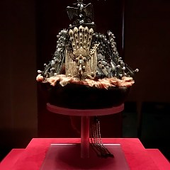 午门正楼展厅主题为「有容乃大」,红色的空间背景烘托出紫禁城宫殿建筑及装饰的华丽与精美。这一部分讲述清代各个时期紫禁城建筑格局与风格的变化,介绍清代皇帝对紫禁城建筑进行的重修或改建,形成今日紫禁城的基本格局。