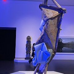 「艺术礼物」章节展示博物馆获赠的各种当代艺术品,涵盖绘画、照片、视频、雕塑、陶瓷器等不同类别,代表件包括 Julie Mehretu、Robert Frank、Alex Katz、Coco Fusco 等艺术家的作品。