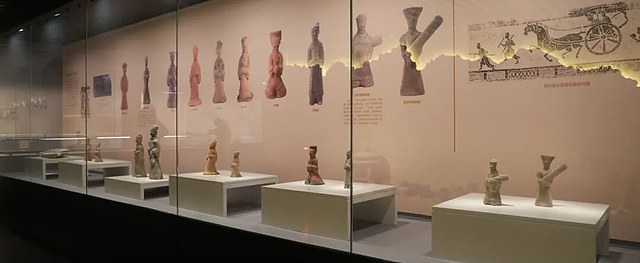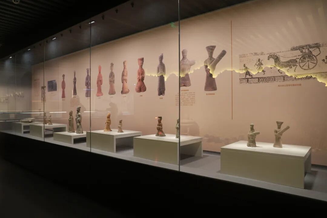 「宴乐·彼岸」单元的展品体现汉代「事死如事生」的丧葬观念:俳优俑、抚琴俑、长袖舞俑表现贵族热闹的宴饮;辟邪俑、西王母烛台、摇钱树则构建彼岸世界,承载着古人驱邪避凶、升天成仙的美好祈愿。