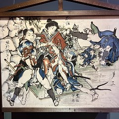 「绘金」本名弘濑金藏(1812-1876),是江户时代后期出生于土佐藩(今高知县)的日本画家。他自幼展现出绘画天赋,曾赴江户求艺,20岁回乡成为土佐藩的御用画师,但在33岁时因卷入伪画事件被逐出藩城,之后他定居赤冈町(今香南市),自称「町绘师·金藏」,绘制了诸多深受平民欢迎的戏剧屏风画、提灯画、风筝画等,被当地居民亲切地称为「绘金」。
