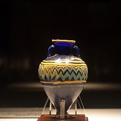 玻璃器曾是古代重要的贸易商品。春秋末战国初,原产于地中海东岸的玻璃珠饰传入中原,推动了中国玻璃制造业的发展。展览将并列呈现丝绸之路开通以后罗马、萨珊、伊斯兰以及中国玻璃器,探讨其中体现的东西方文明的交流与融合。
