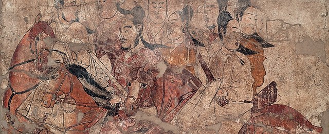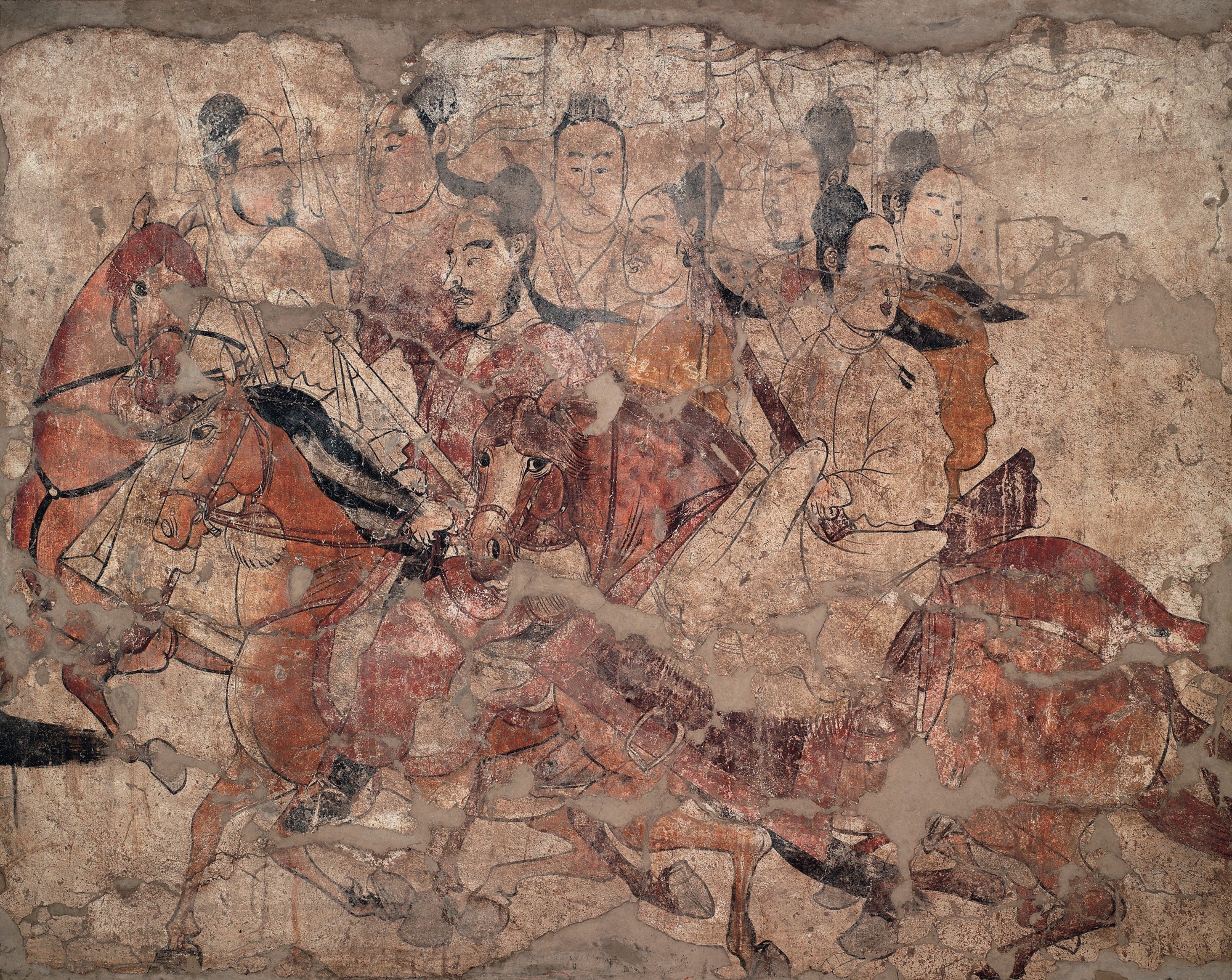 「鞍马游骑图」壁画,北齐,太原市王郭村娄睿墓出土