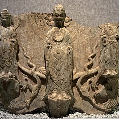 石雕佛菩萨三尊像,东魏武定四年(546年),诸城原城南体育馆出土,诸城市博物馆藏